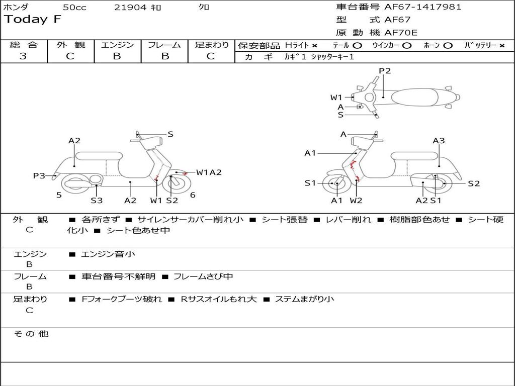 | Номер рамы / VIN | AF67-1417981 |