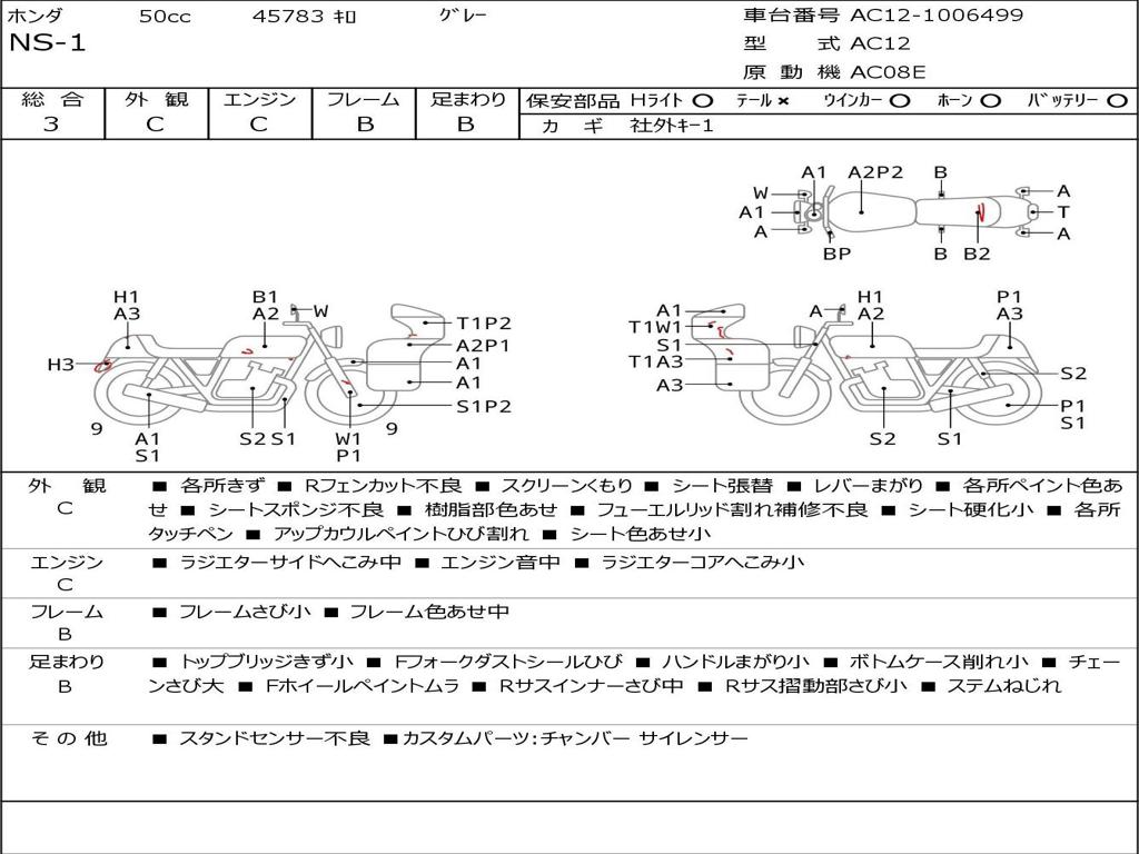 | Номер рамы / VIN | AC12-1006499 |