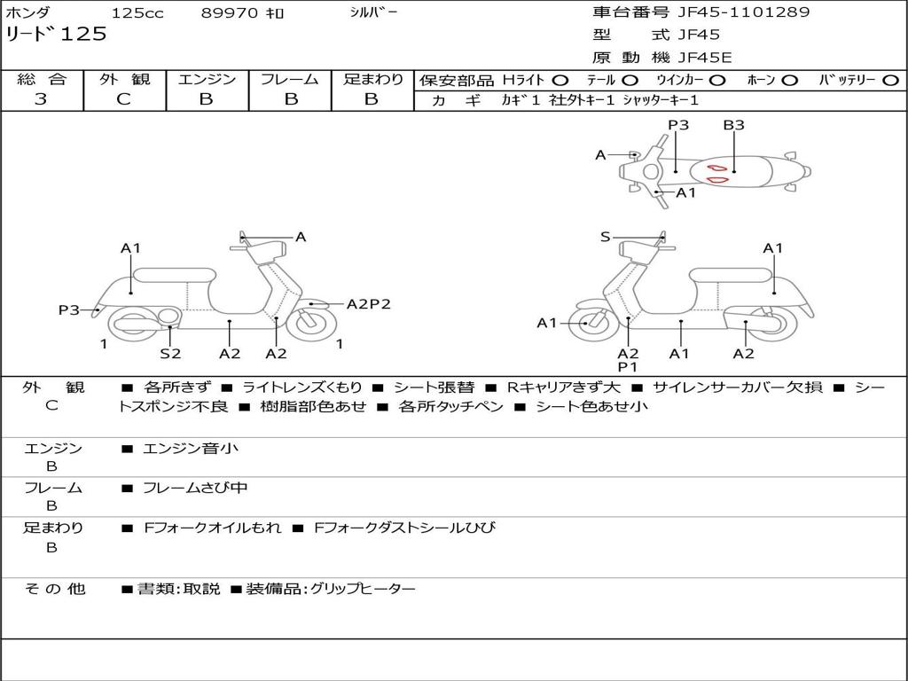 | Номер рамы / VIN | JF45-1101289 |