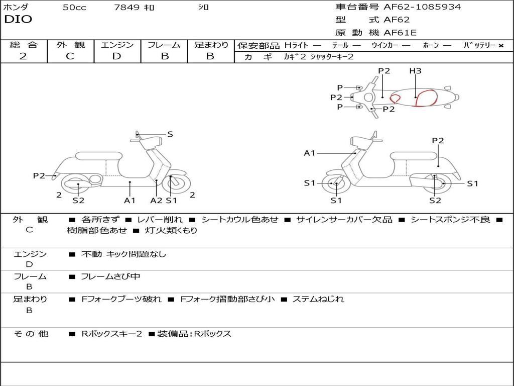 | Номер рамы / VIN | AF62-1085934 |