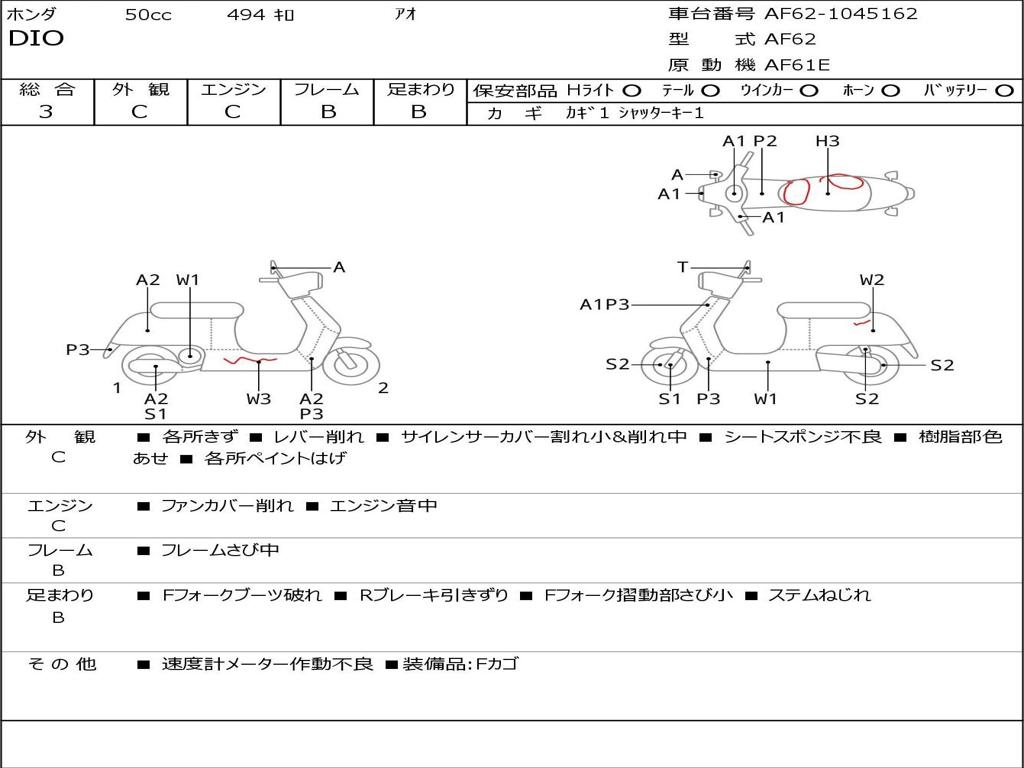 | Номер рамы / VIN | AF62-1045162 |