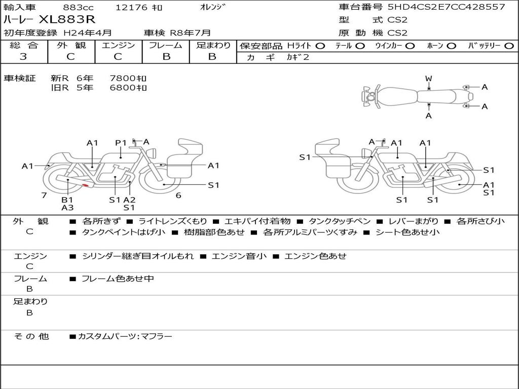| Номер рамы / VIN | 5HD4CS2E7CC428557 |