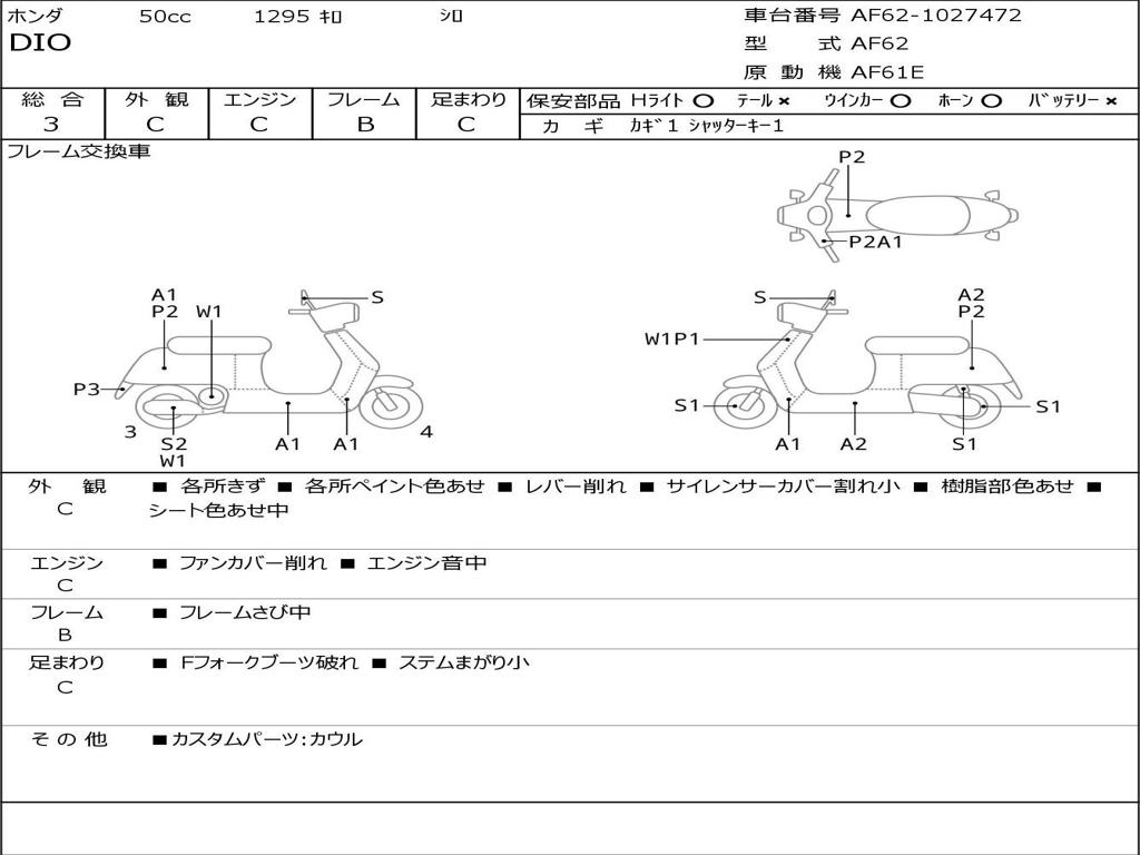 | Номер рамы / VIN | AF62-1027472H |