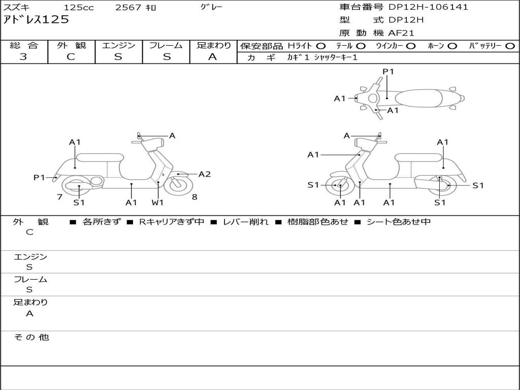 | Номер рамы / VIN | DP12H-106141 |