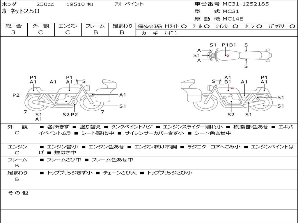 Номер рамы / VIN | MC31-1252185 |
