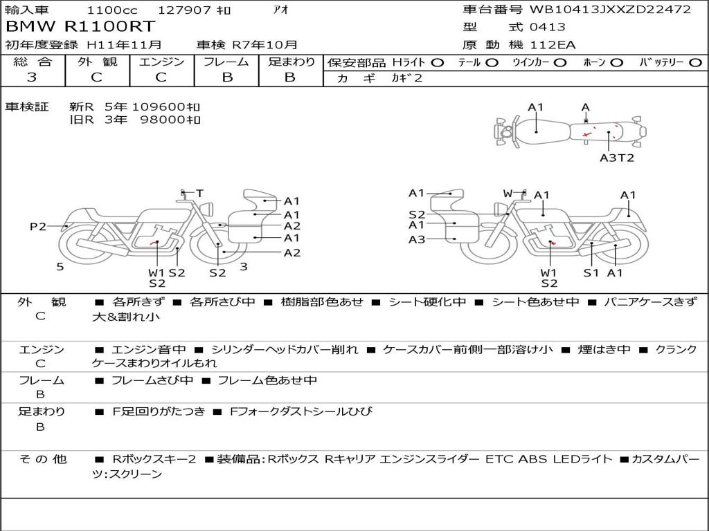 | Номер рамы / VIN | WB10413JXXZD22472 |