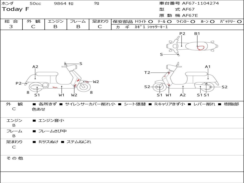 | Номер рамы / VIN | AF67-1104274 |