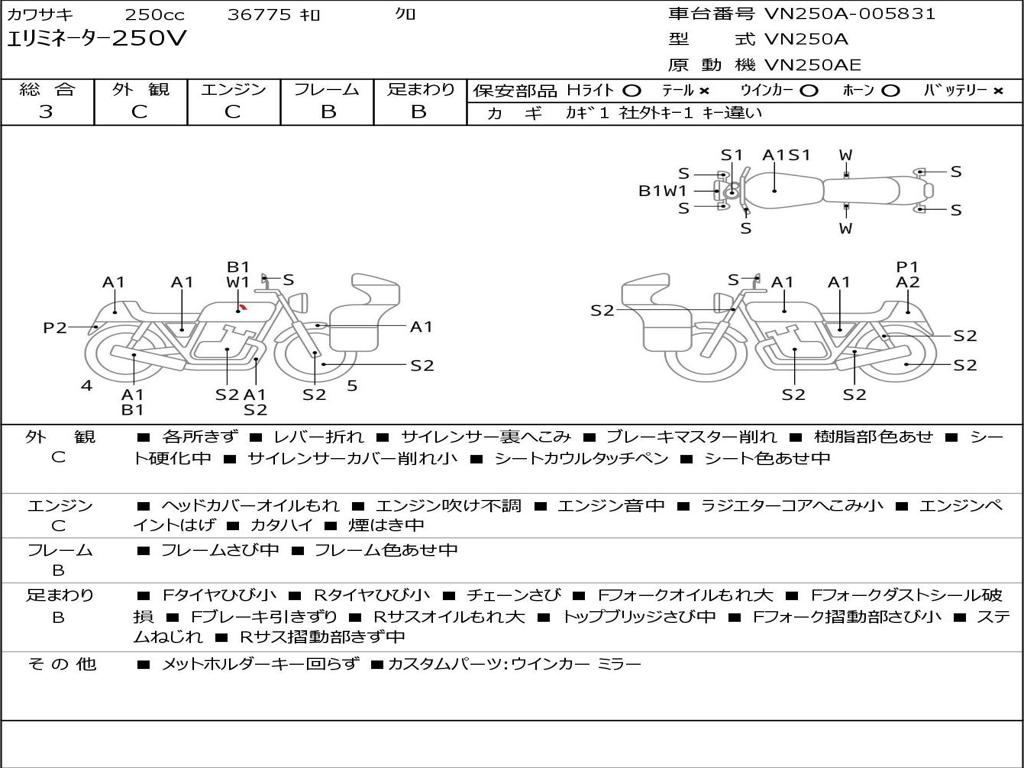 | Номер рамы / VIN | VN250A-005831 |