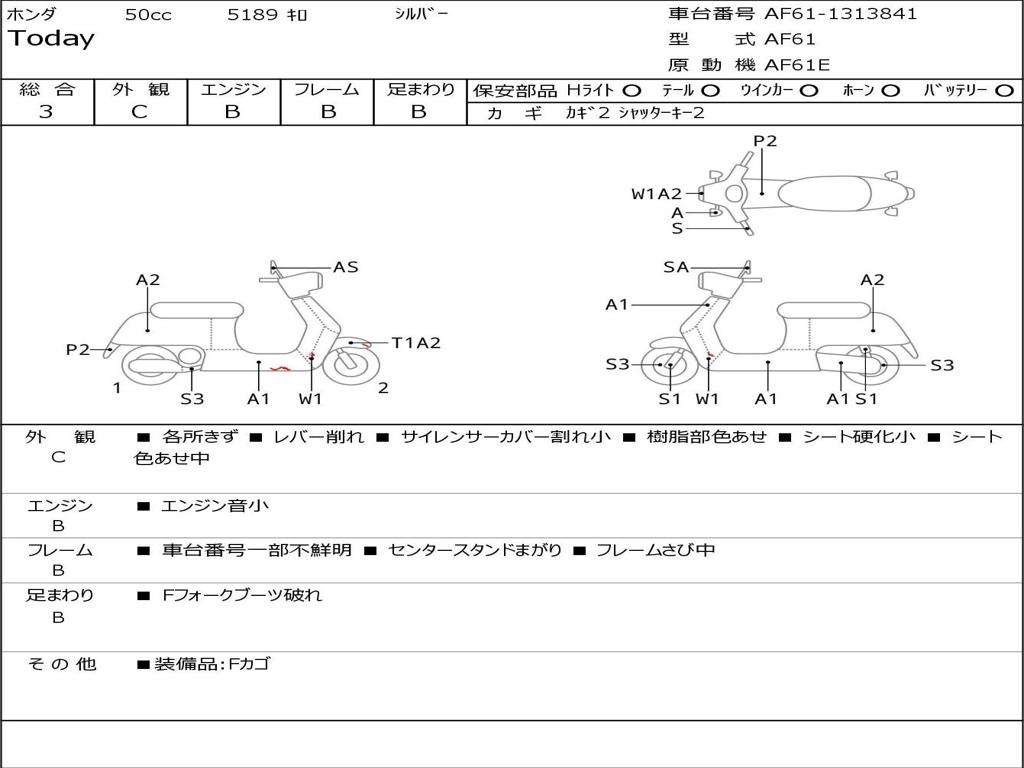 | Номер рамы / VIN | AF61-1313841 |