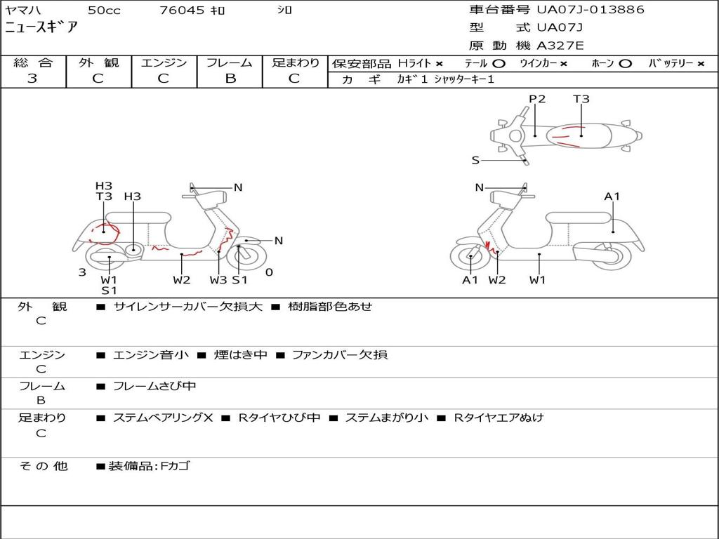 | Номер рамы / VIN | UA07J-013886 |