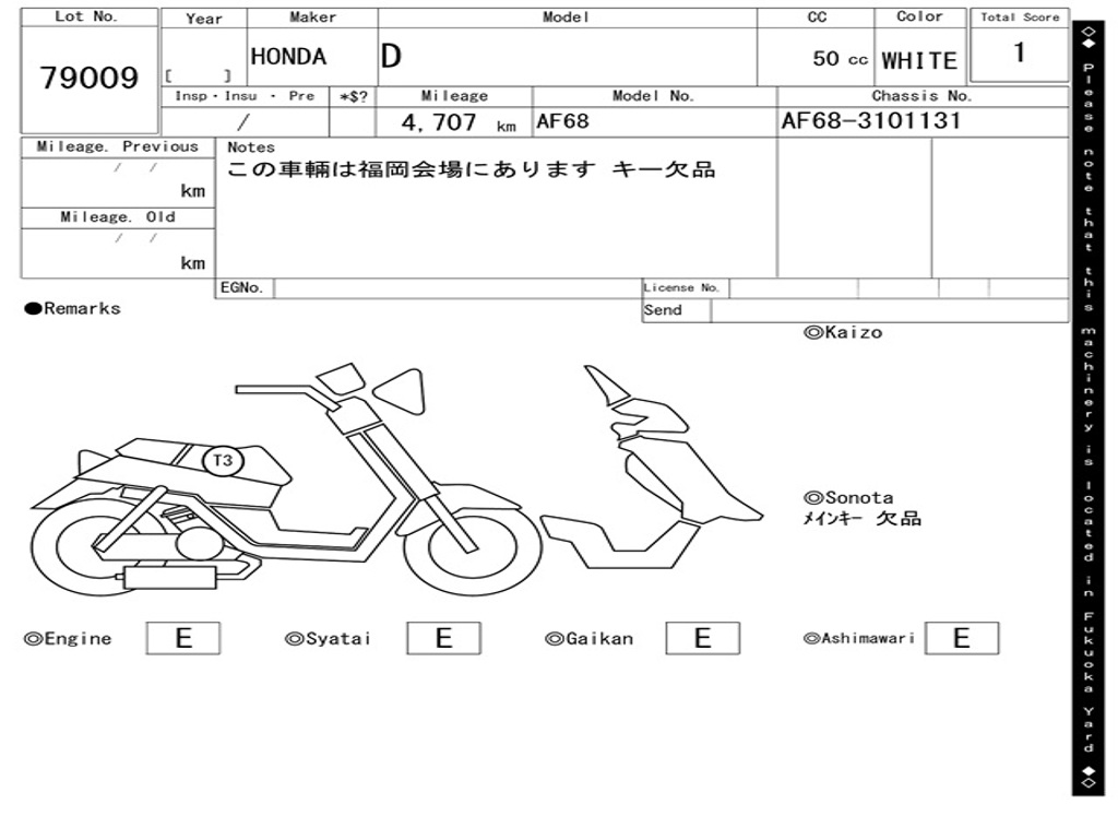 | Номер рамы / VIN | AF68-3101131 |