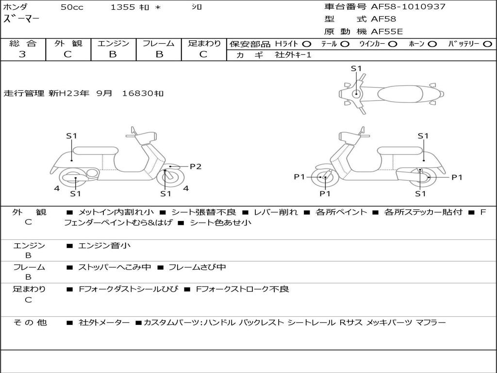 | Номер рамы / VIN | AF58-1010937 |