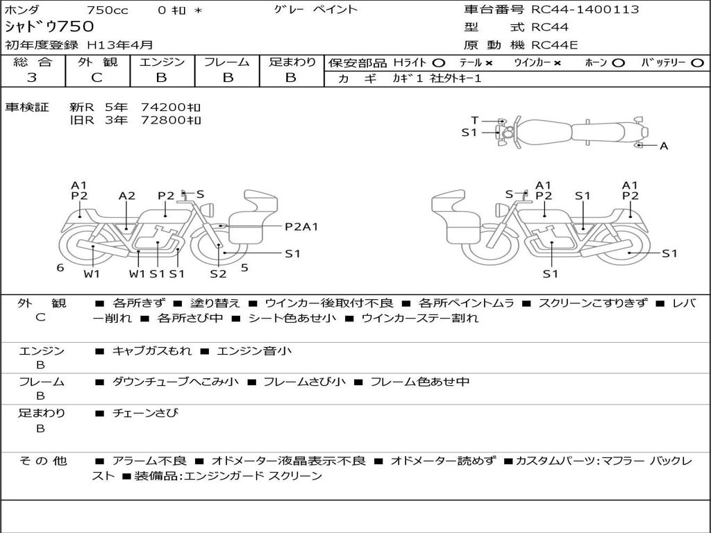 | Номер рамы / VIN | RC44-1400113 |