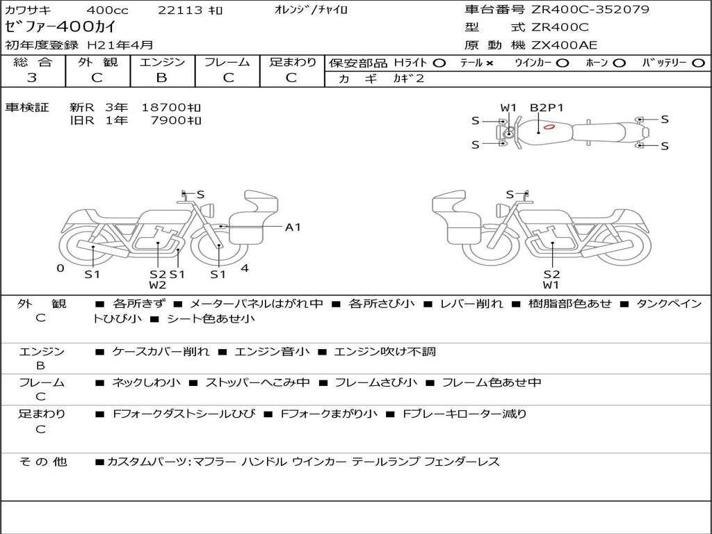 | Номер рамы / VIN | ZR400C-352079 |