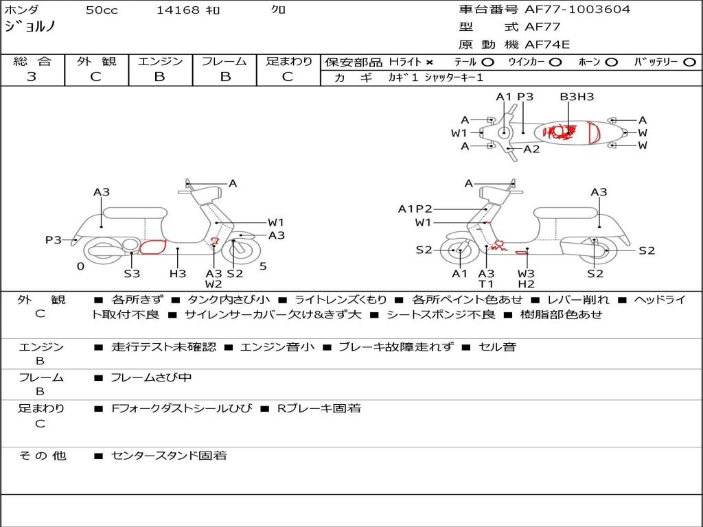 | Номер рамы / VIN | AF77-1003604 |