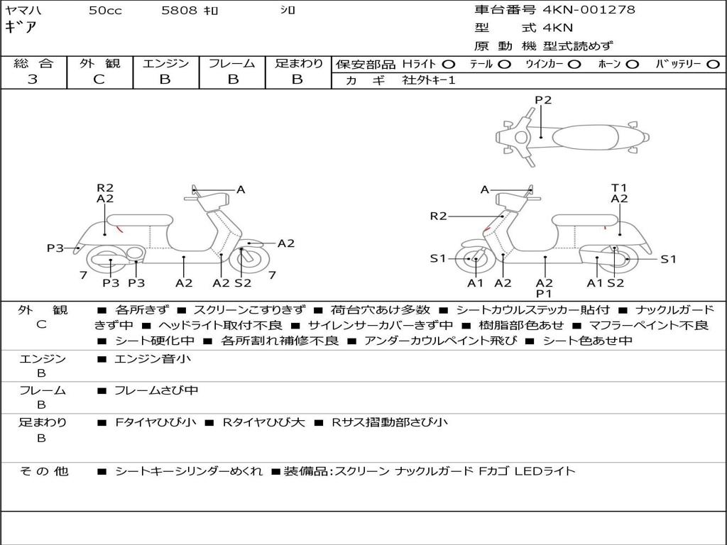 | Номер рамы / VIN | 4KN-001278 |