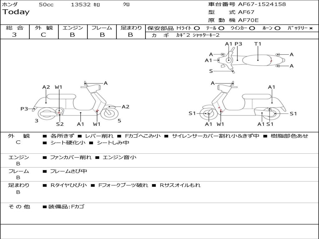 | Номер рамы / VIN | AF67-1524158 |