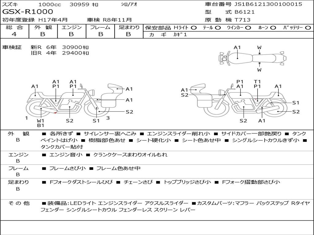 | Номер рамы / VIN | JS1B6121300100015 |