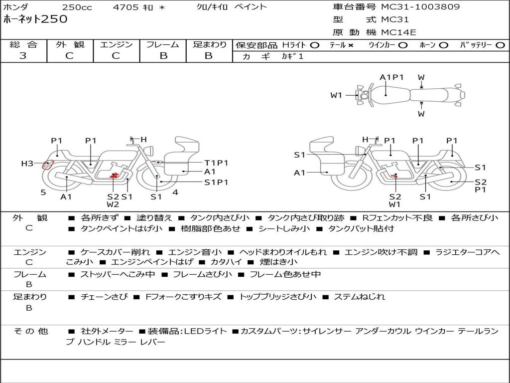 | Номер рамы / VIN | MC31-1003809 |