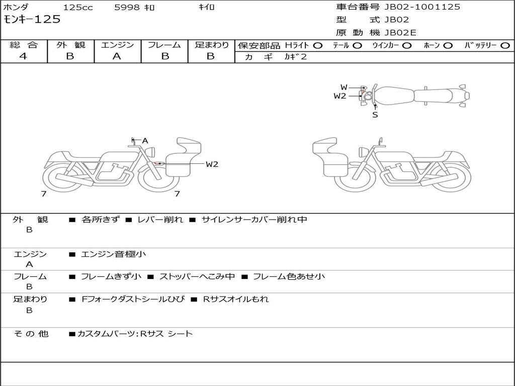 Номер рамы / VIN | JB02-1001125 |