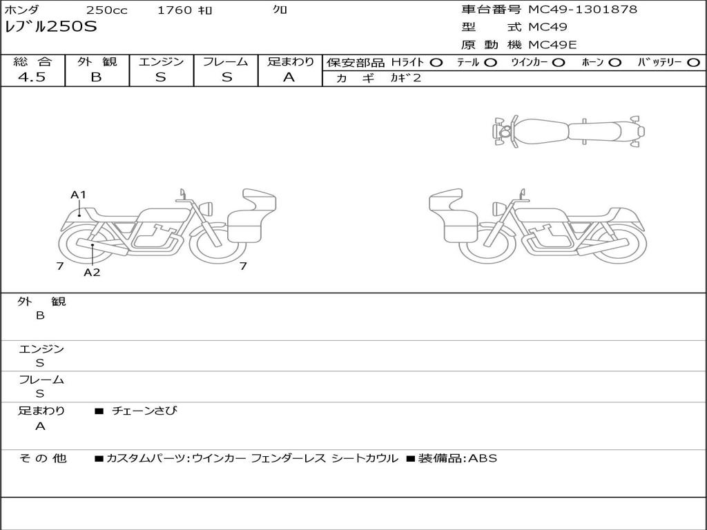 | Номер рамы / VIN | MC49-1301878 |