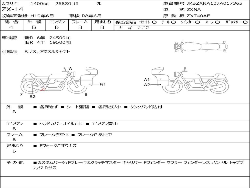 | Номер рамы / VIN | JKBZXNA107A017365 |