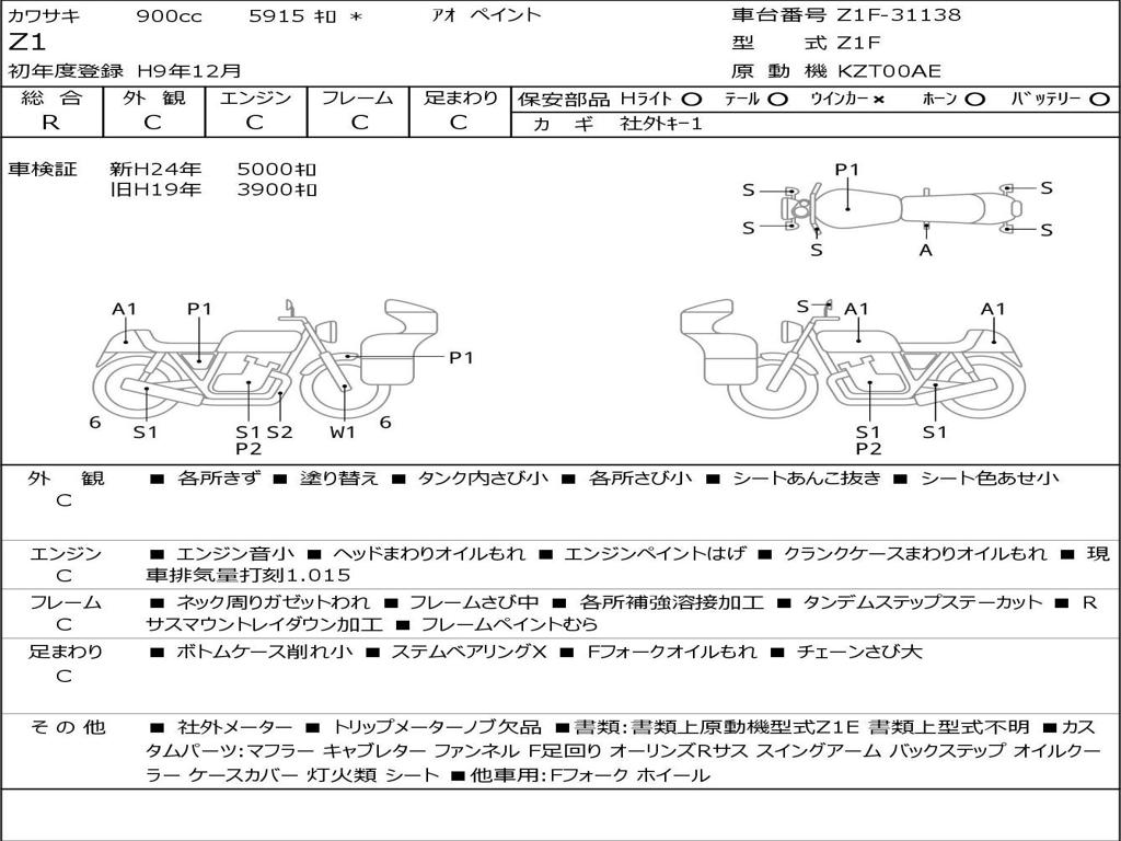 | Номер рамы / VIN | Z1F-31138 |