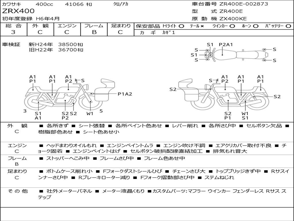 | Номер рамы / VIN | ZR400E-002873 |