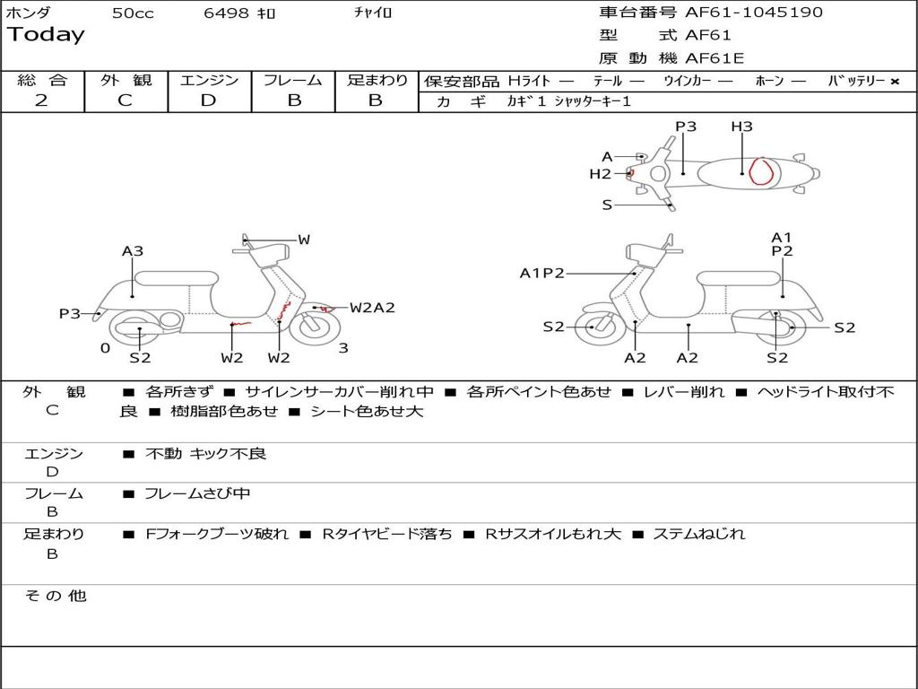 | Номер рамы / VIN | AF61-1045190 |