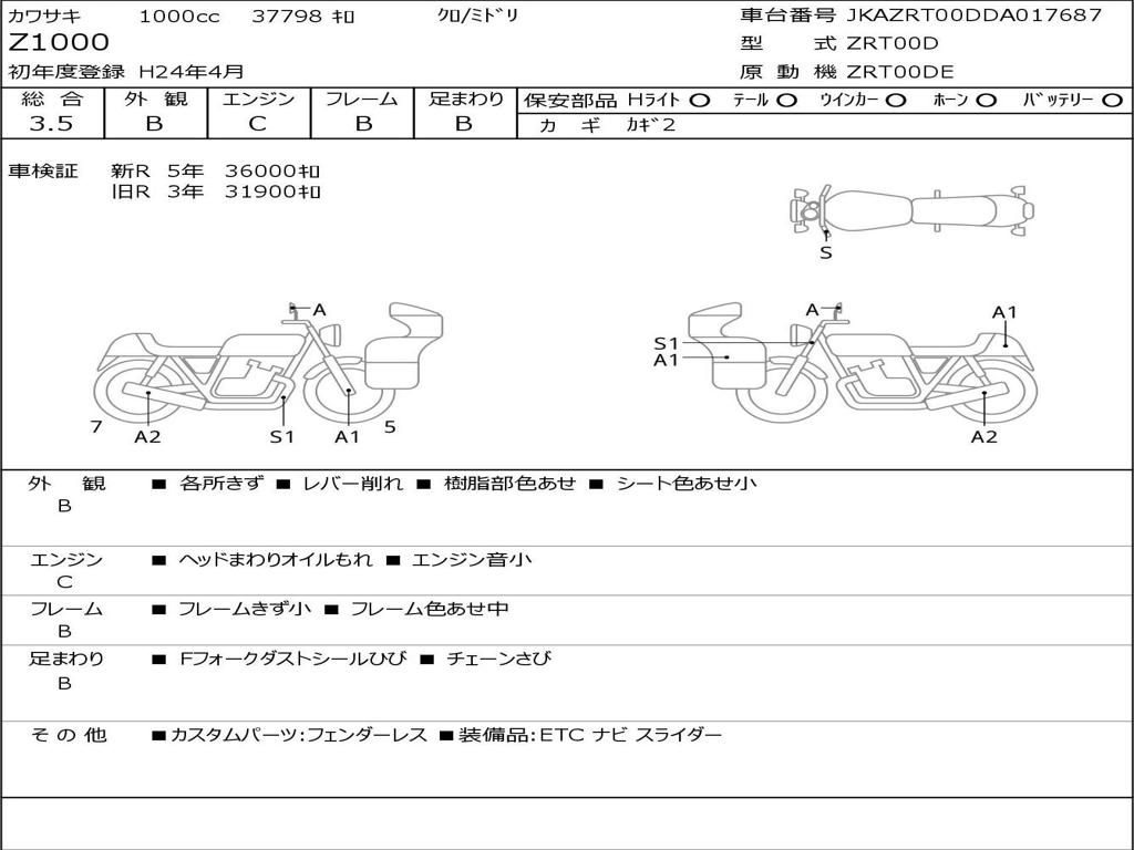 | Номер рамы / VIN | JKAZRT00DDA017687 |