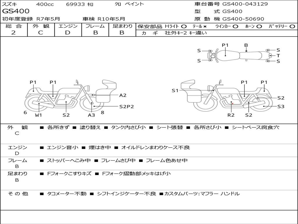 | Номер рамы / VIN | GS400-043129 |