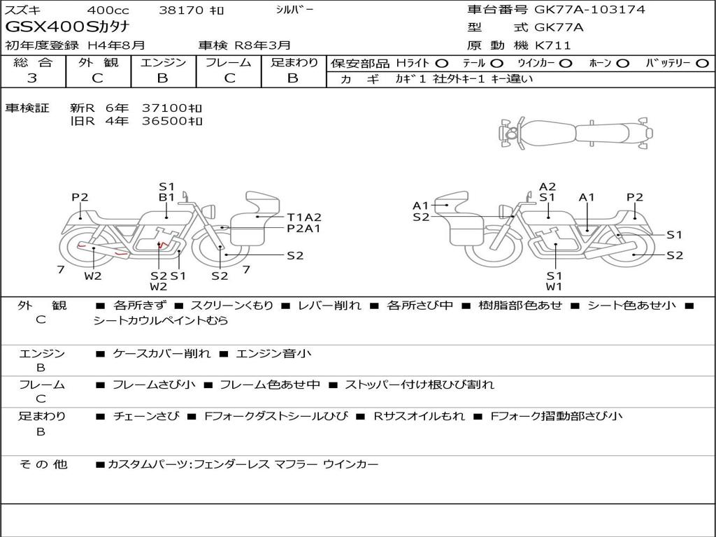 | Номер рамы / VIN | GK77A-103174 |