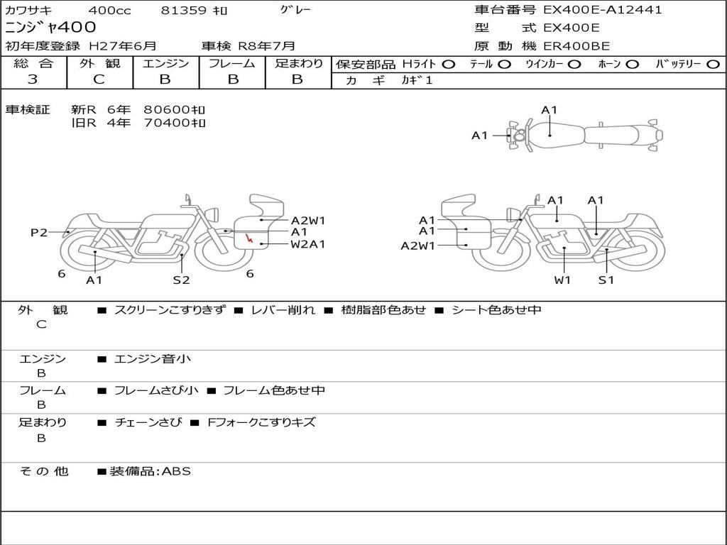 | Номер рамы / VIN | EX400E-A12441 |