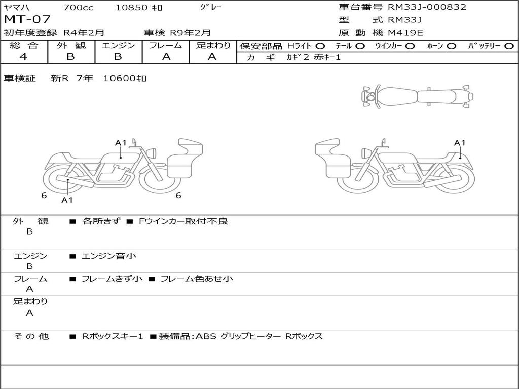 | Номер рамы / VIN | RM33J-000832 |