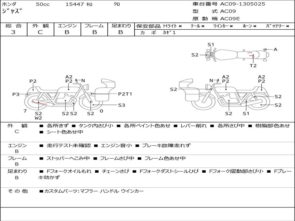 | Номер рамы / VIN | AC09-1305025 |