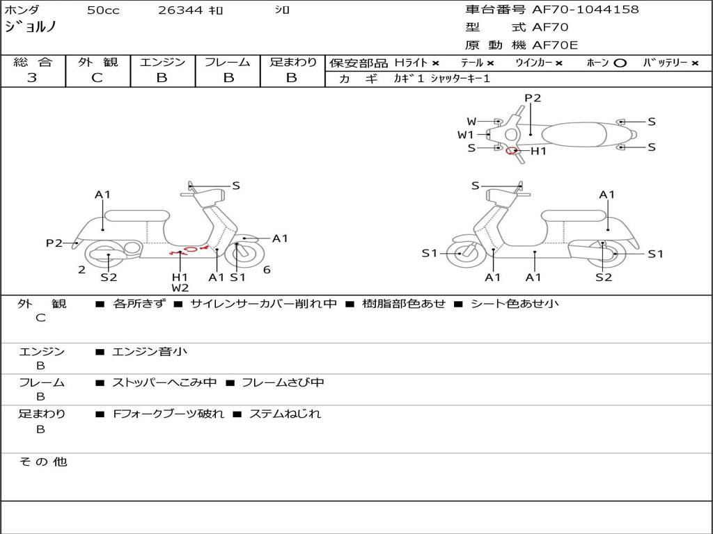 | Номер рамы / VIN | AF70-1044158 |