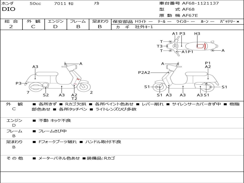 | Номер рамы / VIN | AF68-1121137 |