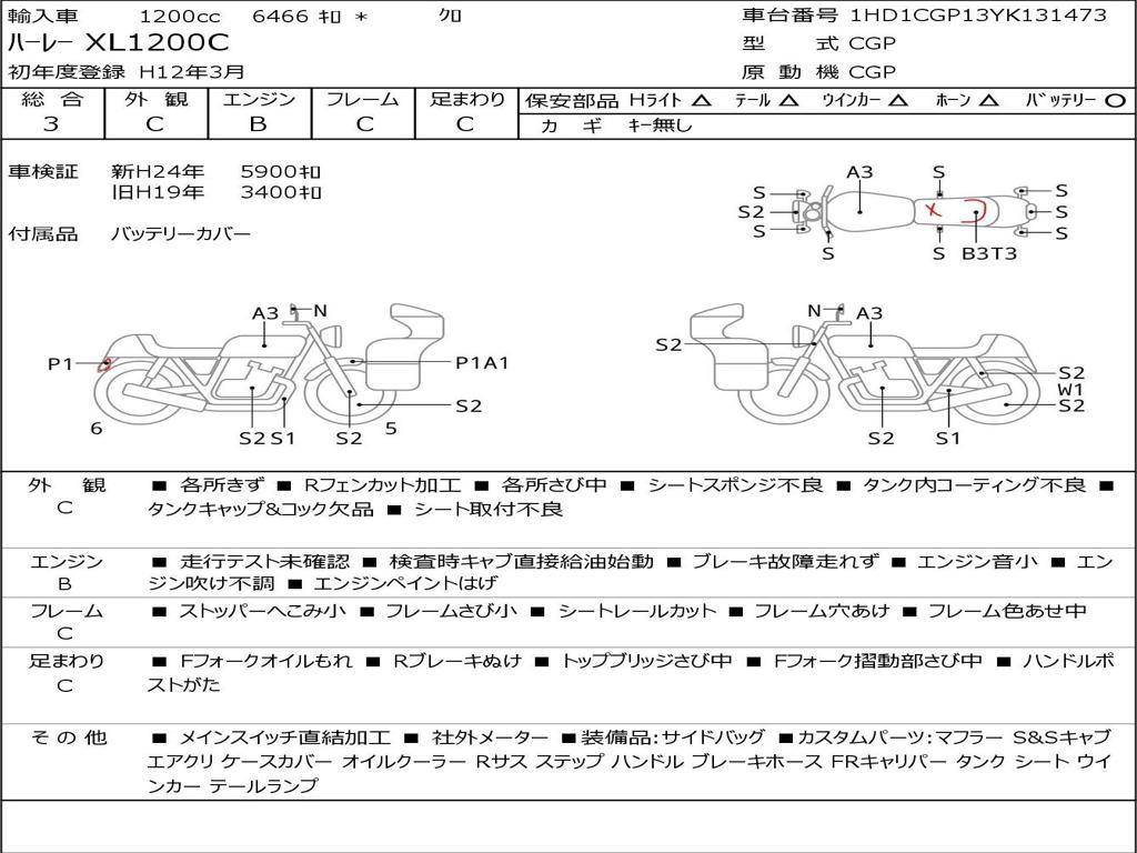 | Номер рамы / VIN | 1HD1CGP13YK131473 |