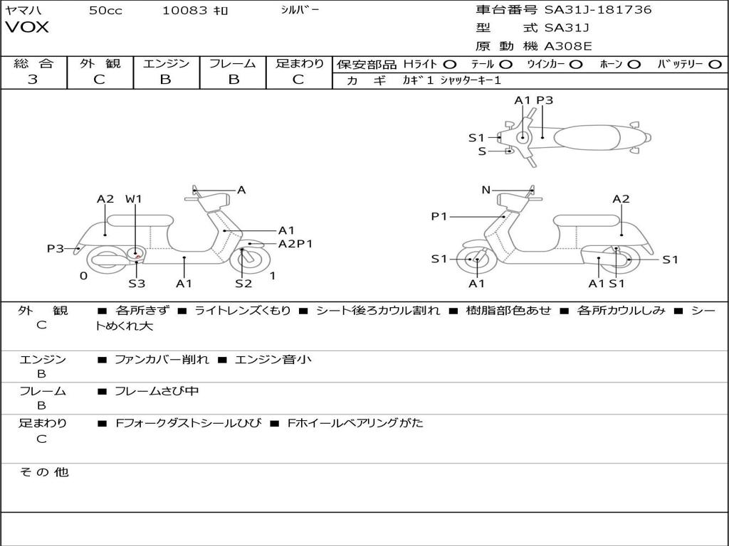 | Номер рамы / VIN | SA31J-181736 |