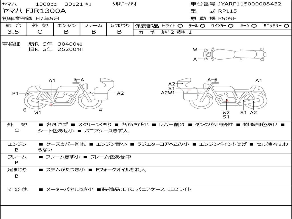 | Номер рамы / VIN | JYARP115000008432 |