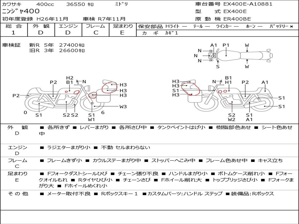 | Номер рамы / VIN | EX400E-A10881 |