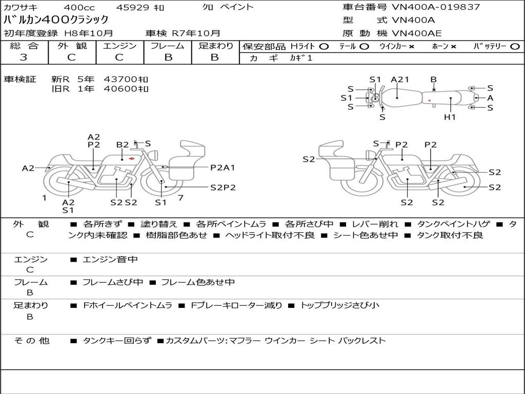 | Номер рамы / VIN | VN400A-019837 |