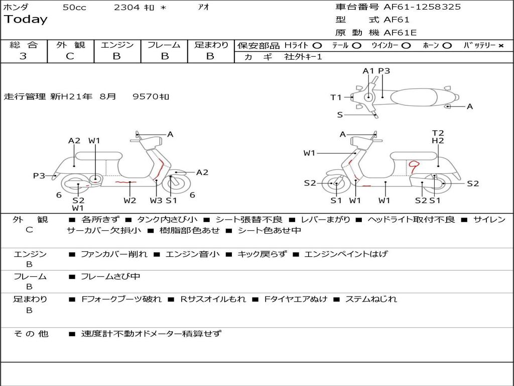| Номер рамы / VIN | AF61-1258325 |