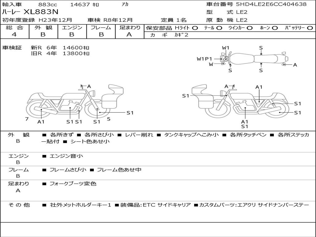 | Номер рамы / VIN | 5HD4LE2E6CC404638 |