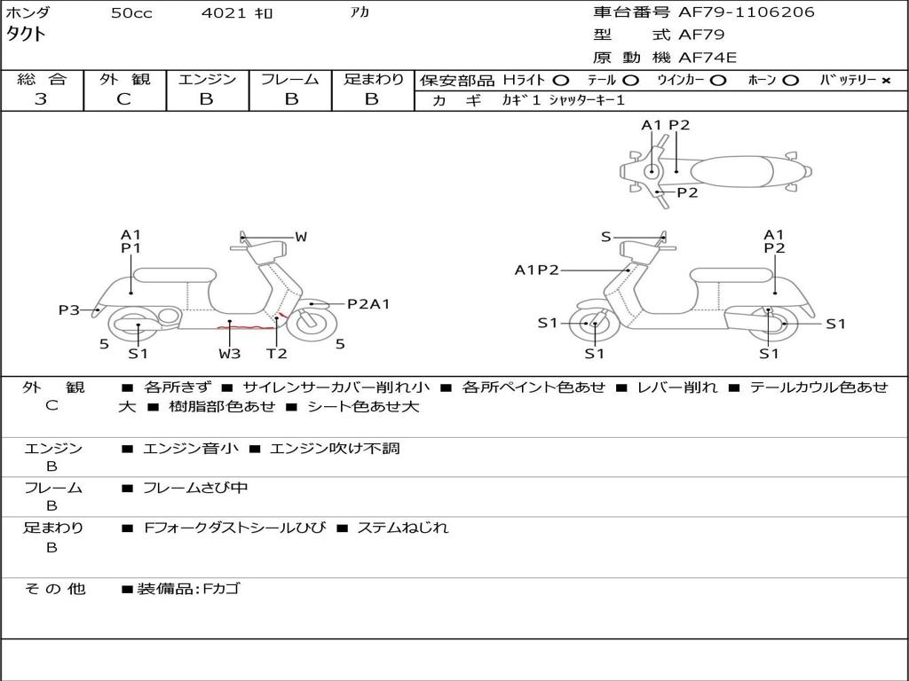 | Номер рамы / VIN | AF79-1106206 |