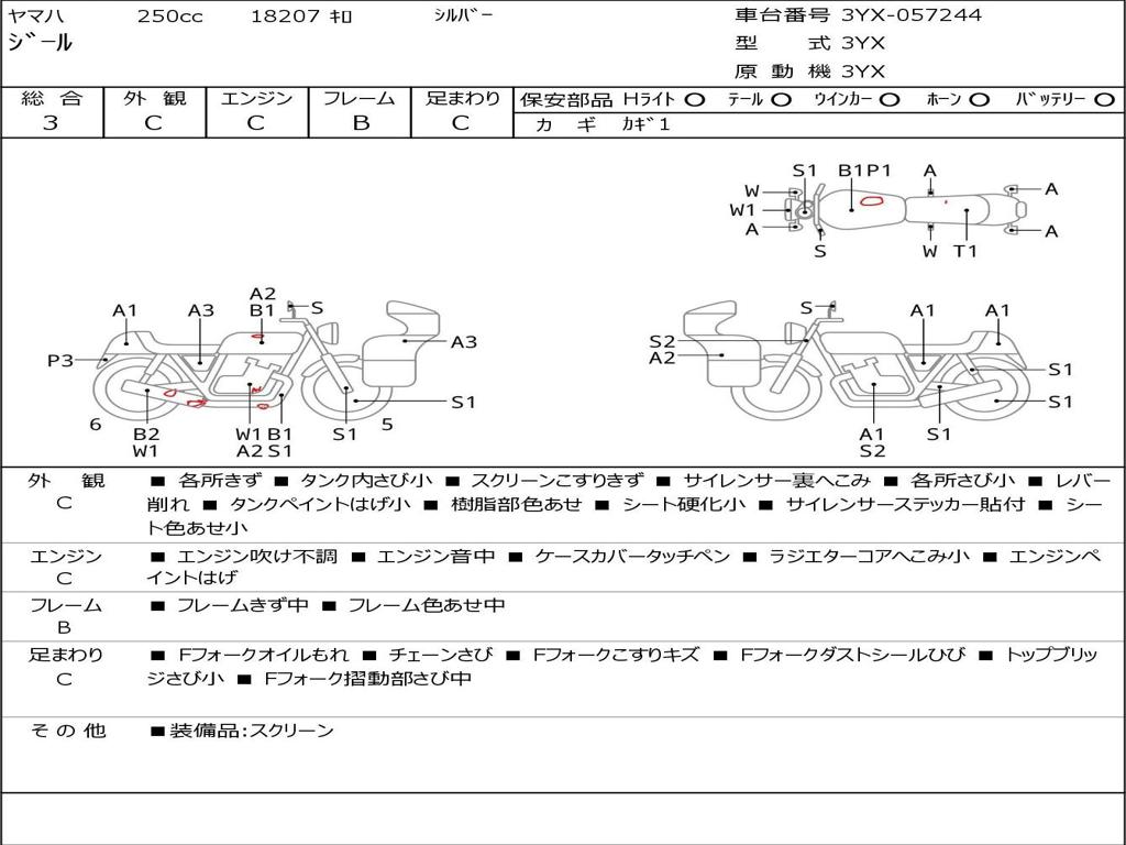 | Номер рамы / VIN | 3YX-057244 |