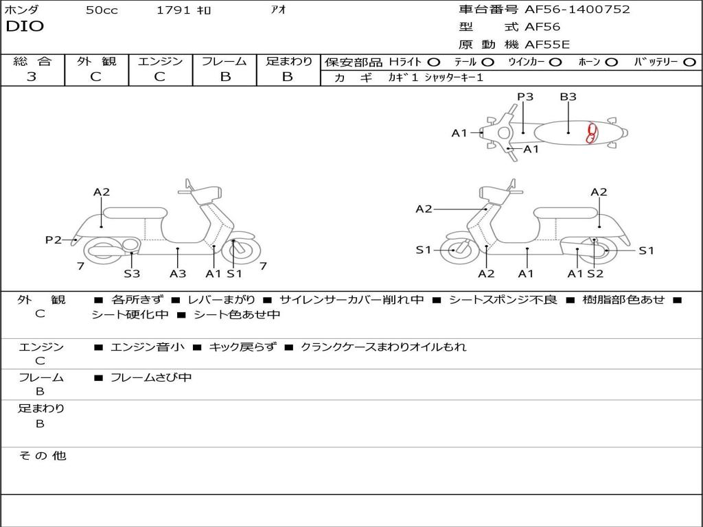 | Номер рамы / VIN | AF56-1400752 |