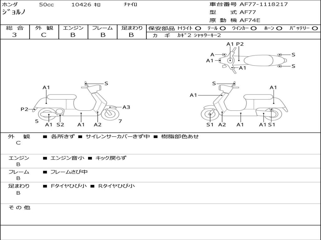 | Номер рамы / VIN | AF77-1118217 |