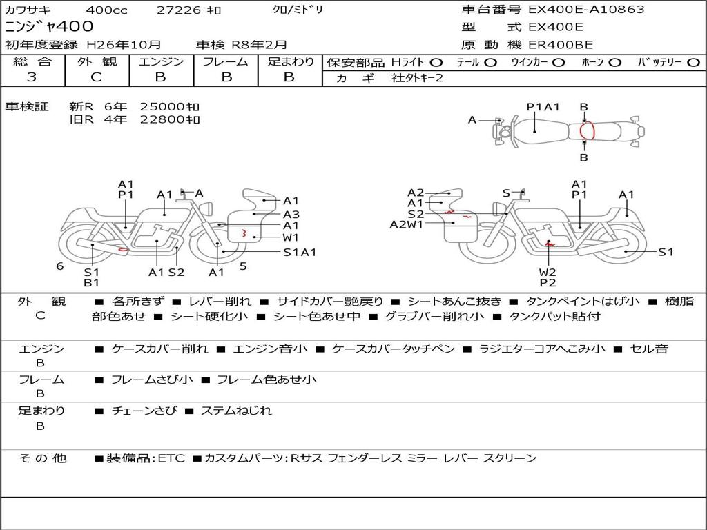 | Номер рамы / VIN | EX400E-A10863 |