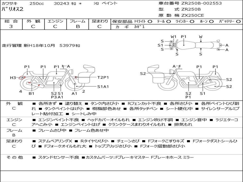 | Номер рамы / VIN | ZR250B-002553 |